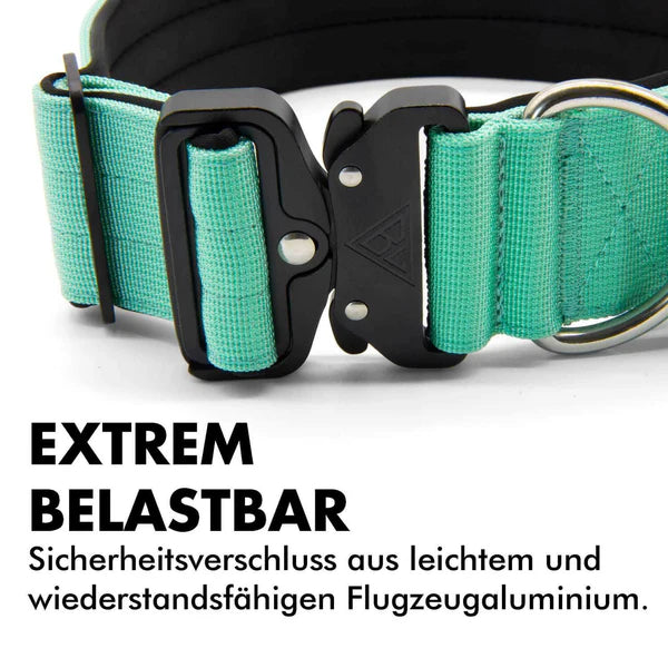 Das taktische Hundehalsband in Mint Green ist die perfekte Kombination aus robuster Funktionalität, hochwertigem Design und maximalem Komfort für deinen Hund. Besonders geeignet für Hunde, die viel in anspruchsvollen Umgebungen unterwegs sind, überzeugt dieses Halsband durch seine hohe Belastbarkeit und Langlebigkeit. Gefertigt aus dreifach vernähtem Nylon, hält es selbst stärksten Belastungen stand und bietet deinem Hund zuverlässigen Halt. Der D-Ring aus rostfreiem Edelstahl sorgt für eine sichere Befestigung der Hundeleine, ohne dass du dir Sorgen über Abnutzung oder Rost machen musst.